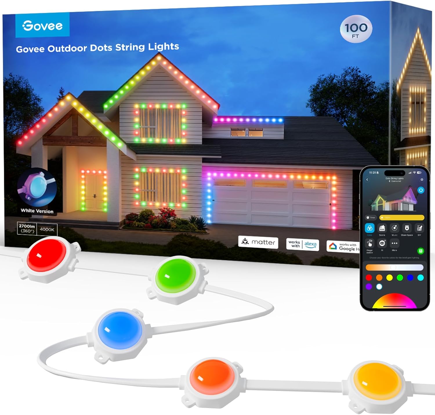 Govee Outdoor LED Strip Lights, 45 RGBIC LED Lights 100FT String Lights with 65 Scene Modes, Hallowe